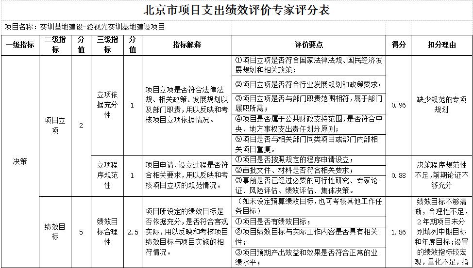 1、项目决策情况:项目决策指标,满分10分,评价得分为8.18分,该项目立项依据较为充分,已列入2020年度工作计划,与职责相符,属于公共财政支持范围,项目申请、设立过程较为规范完整;总体绩效目标设立明确,符合项目单位的实际需求,与年度工作计划相关,工作目标结果导向清晰;预算编制较为细化,预算编制依据较为充分完整,并经过了专家论证及预算评审,项目预算内容与项目实施内容匹配。
