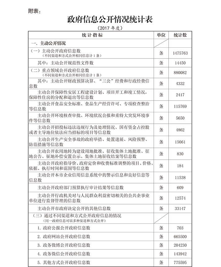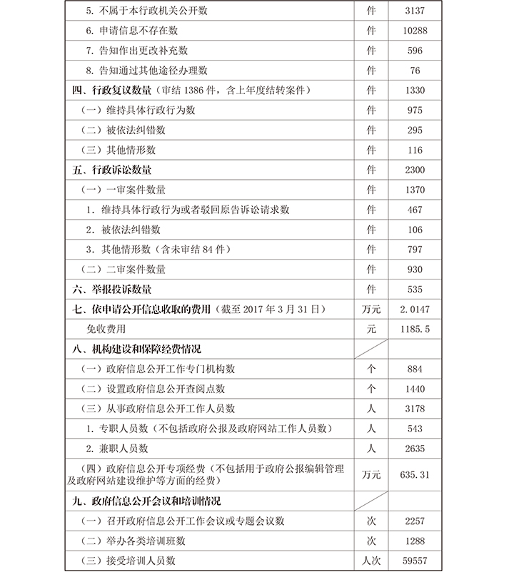 全市37499件申请办结数为34226件,其中按时办结数29246件,延期办结数4980件。其余未到答复期的按照《中华人民共和国政府信息公开条例》时限规定在2018年答复。