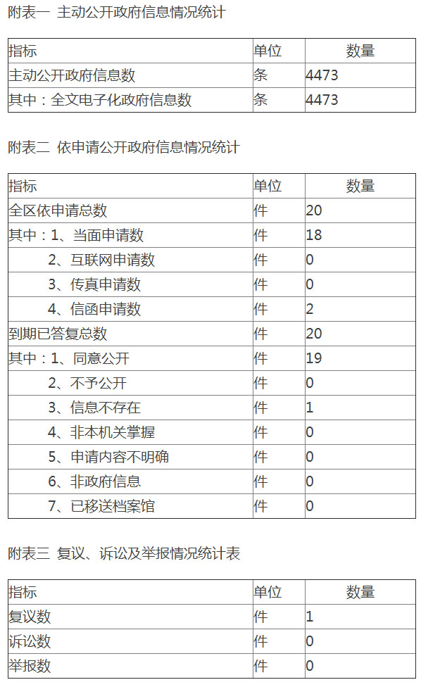 全文包括概述,主动公开政府信息的情况,依申请公开政府信息和不予公开政府信息的情况,因政府信息公开申请行政复议、提起行政诉讼的情况,政府信息公开工作存在不足及改进措施。