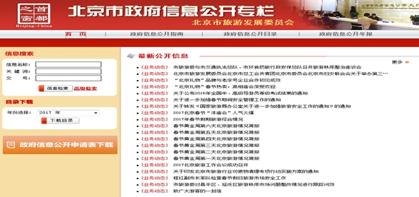 1.依托“首都之窗”门户网站和北京市旅游发展委员会官网,设立办事指南、新闻中心、政务公开、咨询投诉、诚信公示等专栏,不断推进政务信息公开,主动接受社会和群众监督。