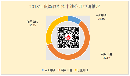 我局依申请公开申请总数为123件。申请方式中,当面申请13件,占总数的10.6%;通过网络提交申请73件,占总数的59.3%;以以信函形式申请37件,占总数的30.1%。