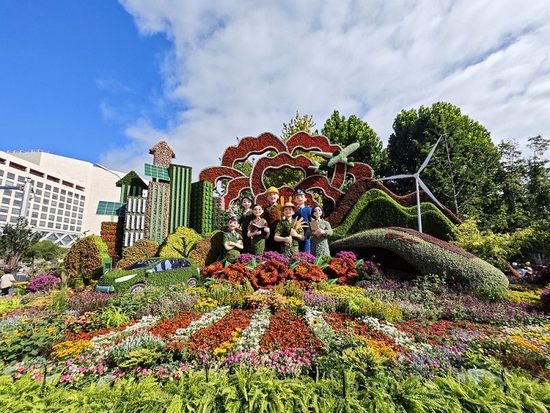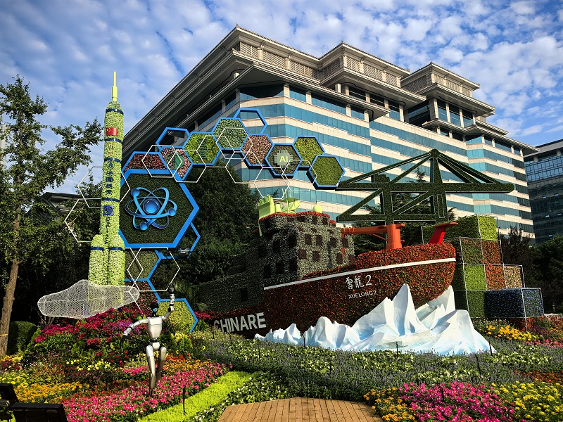 科技强国。雪龙2号破冰船,AI、机器人等元素均栩栩如生。花坛位置:西单东南角。(摄影:苏瑞淇)