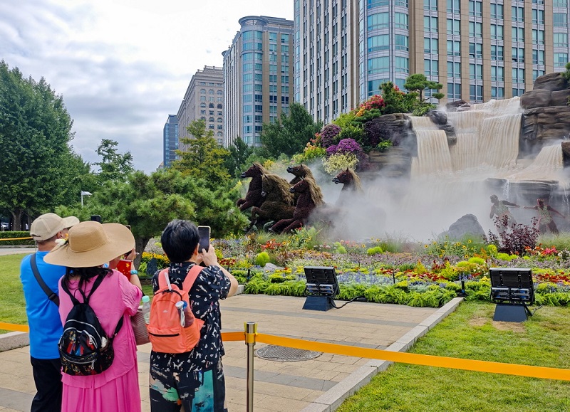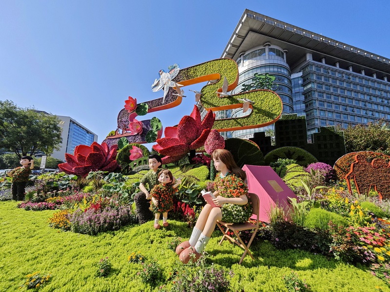 各行各业的劳动付出,共同绘制出发展蓝图,欣欣向荣的光景让人动容。花坛位置:西单东北角。(摄影:乔健)